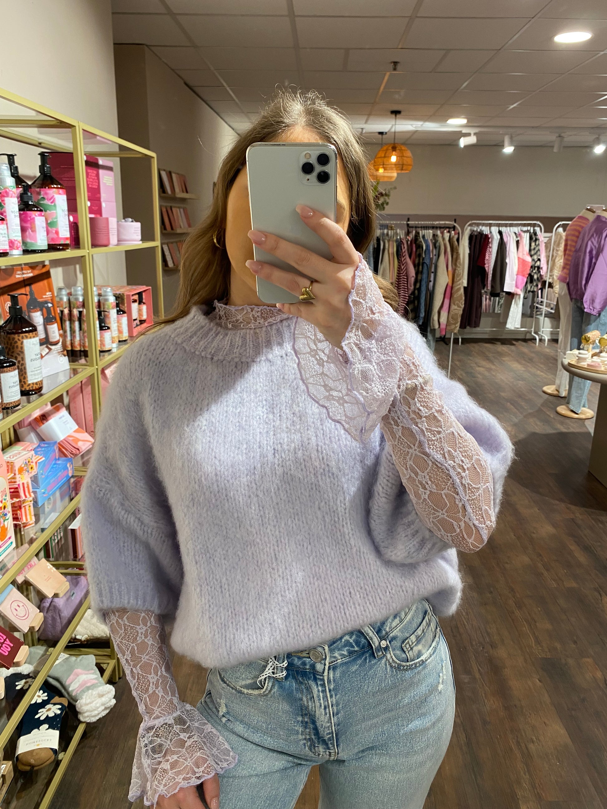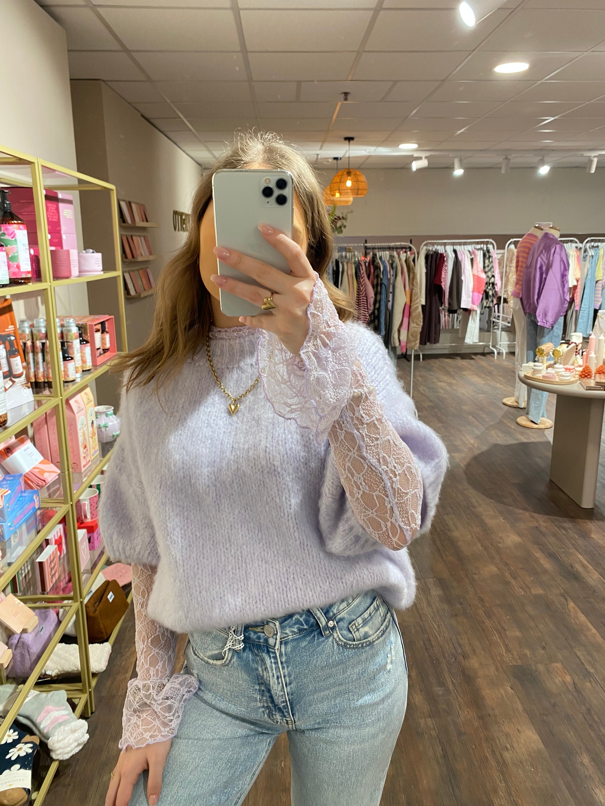Dit lichtpaarse truitje voelt heerlijk zacht aan. Het gebreide materiaal met fluffy effect geeft een warme uitstraling. Ideaal voor frisse voorjaarsdagen. Perfect te combineren met de lila Anna lace top. Een comfortabel en trendy item.